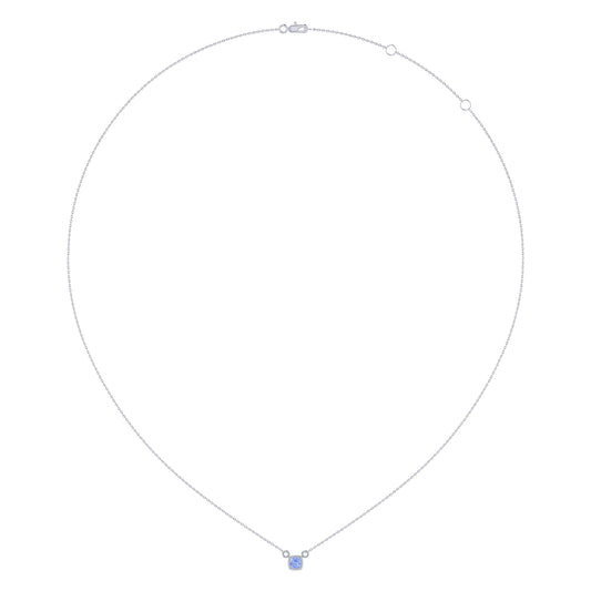 Cushion Cut Tanzanite & Diamond Birthstone Necklace In 14K White Gold