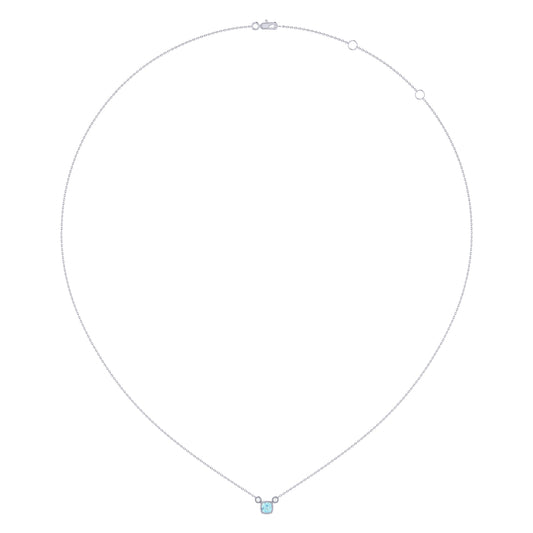 Cushion Cut Aquamarine & Diamond Birthstone Necklace In 14K White Gold
