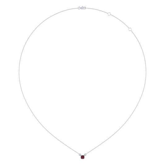Cushion Cut Ruby & Diamond Birthstone Necklace In 14K White Gold